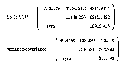Rather than PROC CORR we could also use PROC GLM, in MANOVA (Multivariate Analysis of Variance) mode: