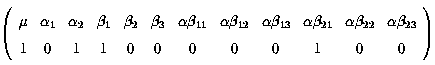 | µ + a1 + b1 + ab11 | 105.25 ± 1.40 |
