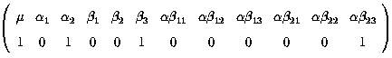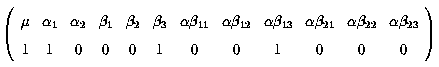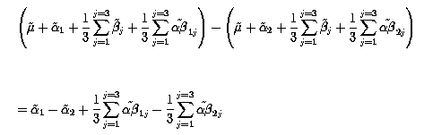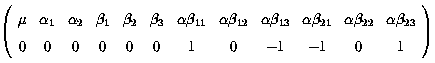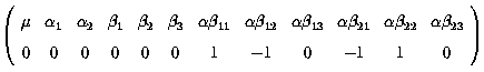Looking at these estimable functions we can see that there is no way to obtain only differences between levels of a main effect completely free of other effects; i.e. (A1 - A2) is not estimable.