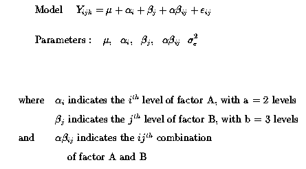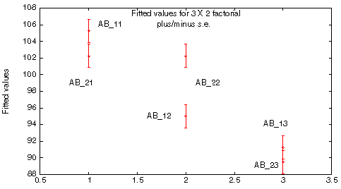 It means that the interaction term AB is presumed to be real and to exist; that the model cannot be simply explained in terms of µ, A and B (see Ch 15.1 and Ch 15.2 of Steel, Torrie and Dickey). Thus our fitted values are :