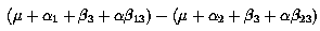 difference between level 1 - 2 of factor A at level 3 of factor B.