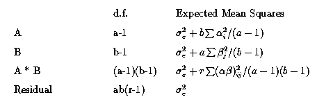 Then the Expected Mean Squares from the Analysis of Variance are :