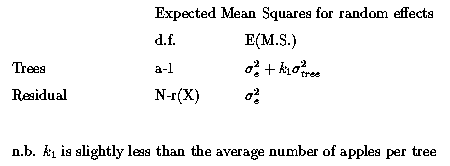 If we analysed this dataset and looked at the Expected Mean Squares we would find :