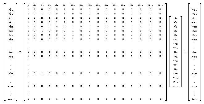 Yij = µ + dieti + monthj + penij + animalij + eij