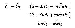 Thus the difference between diets does not involve the month effects and we find that the sampling variance for diet differences involves only the residual variance.